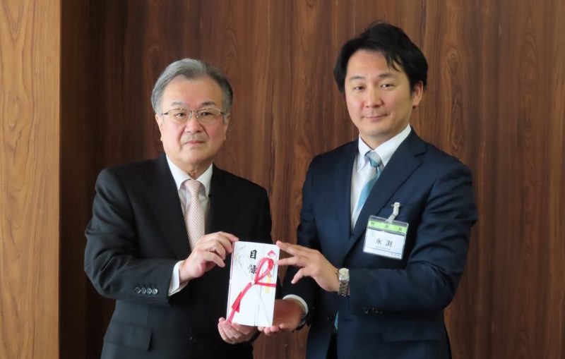 令和7年3月18日(火)仙台市役所において、震災の経験や教訓の継承・発信に役立てていただくため、寄附金百万円の目録を贈呈いたしました。